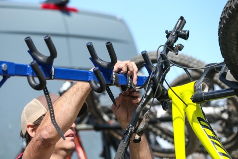 Vertical hitch mounted bike rack for 6 bikes